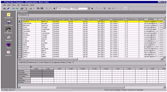 除個人信息以外,還有每個人的技巧應用能力和工作效率也必須要記錄在系統(tǒng)之中,工作日程和預測模型的制定是否合理主要看員工的工作時間和工作效率。圖6展示的就是典型的員工排班界面。這些信息使用了ACD的數(shù)據(jù),預測某個技能組在特定的時間需要多少個員工才能應付預測出的電話量。WFMS系統(tǒng)可以通過各種不同的渠道來體現(xiàn)和存儲這些人員信息。