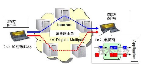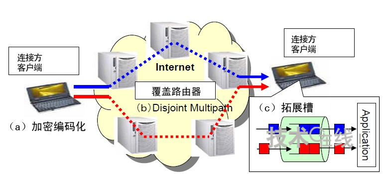 由于是利用多路徑路由發(fā)送分割的數(shù)據(jù),1條路徑被竊聽只會有部分分割數(shù)據(jù)被竊聽。不過,如果發(fā)送分割數(shù)據(jù)的全部路徑都被竊聽,分割數(shù)據(jù)也可能全部流出。為此,此次的秘密通信系統(tǒng)設(shè)想采用基于覆蓋路由器的網(wǎng)絡(luò)(覆蓋網(wǎng)絡(luò)),將全部數(shù)據(jù)被竊聽的可能性減小到了接近0。這是因?yàn)楦采w路由器的通信路徑能夠進(jìn)行實(shí)時(shí)切換。此次的保密通話系統(tǒng)將在覆蓋網(wǎng)絡(luò)達(dá)到實(shí)用化水平時(shí)投產(chǎn)實(shí)用。計(jì)劃在3~4年內(nèi)實(shí)現(xiàn)。