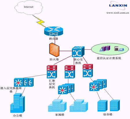 在此形勢下,解放軍后勤工程學(xué)院積極探索,尋求現(xiàn)代校園網(wǎng)建設(shè)的新出路。經(jīng)過對各種方案的收集整理,解放軍后勤工程學(xué)院與重慶電信達(dá)成共識,一起共謀現(xiàn)代校園網(wǎng)建設(shè)新模式:重慶電信負(fù)責(zé)提供網(wǎng)絡(luò)帶寬及軟硬件資源,依賴其深厚敦實的技術(shù)后盾及多年豐富的建網(wǎng)經(jīng)驗,攜手信利公司的藍(lán)信認(rèn)證計費系統(tǒng)為校方提供一套從硬件到軟件的完整解決方案,讓廣大師生能快捷方便地享受更加豐富的網(wǎng)絡(luò)服務(wù);而校方依據(jù)當(dāng)前網(wǎng)絡(luò)狀況,可以對使用用戶進行行之有效的管理和維護,徹底解決了校方之憂,開辟了當(dāng)前形勢下的新天地。
