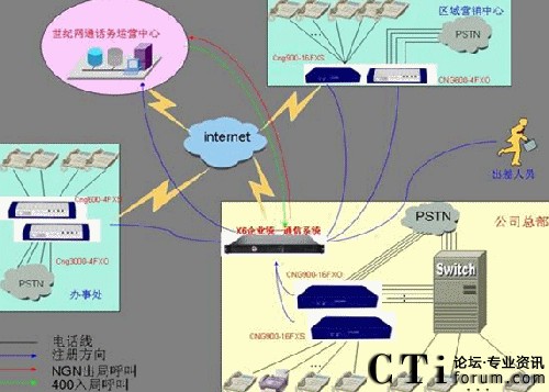 總部現(xiàn)在使用的為傳統(tǒng)PBX設(shè)備,配置為50路外線和200內(nèi)線,分機為8前綴4位的分機號碼,如8001分機。32個的辦事處使用電信匯線通或直接的PSTN線路,2個的區(qū)域營銷中心使用匯線通或直接的PSTN線路,2個分公司使用的小型PBX?偛磕壳吧暾埩4條2M的ADSL線路做為一個集合,沒有固定的IP地址,各個分公司也多使用ADSL上網(wǎng)或電信的小區(qū)寬帶上網(wǎng)。