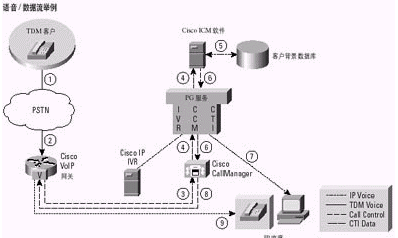 通過一個容納了ACD、IVR、Web和電子郵件服務(wù)器、桌面應(yīng)用以及其他內(nèi)容的計劃,Cisco ICM軟件使公司能夠利用Internet或PSTN實現(xiàn)與客戶的交互。