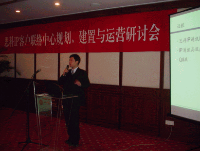2點(diǎn)整,主持人宣布會(huì)議正式開(kāi)始。首先是正音科技公司執(zhí)行副總秦裕農(nóng)先生致開(kāi)幕詞。秦先生從2000多年前的周幽王烽火戲諸侯娓娓道來(lái),一直講到IP技術(shù)在音頻、視頻上的應(yīng)用,為大家生動(dòng)形象地描述了通訊技術(shù)發(fā)展的歷程。在演講的最后,秦先生指出了一個(gè)客戶聯(lián)絡(luò)中心所應(yīng)該具備的特性:"在這個(gè)客戶聯(lián)絡(luò)中心里,客戶應(yīng)該能夠隨時(shí)隨地的通過(guò)電話、傳真、郵件、網(wǎng)絡(luò)電話、文字聊天、web協(xié)同等各種各樣的方式,第一時(shí)間找到企業(yè),解決他們的問(wèn)題;在這個(gè)客戶聯(lián)絡(luò)中心里,企業(yè)能夠廉價(jià)地把分布于全國(guó)各地的服務(wù)資源聯(lián)系起來(lái),進(jìn)行統(tǒng)籌管理,統(tǒng)一為客戶提供服務(wù);在這個(gè)客戶聯(lián)絡(luò)中心里,企業(yè)可以隨時(shí)把一個(gè)空閑的客戶服務(wù)人員調(diào)整為電話銷售人員,而不用去修改復(fù)雜系統(tǒng)設(shè)置;在這個(gè)客戶聯(lián)絡(luò)中心里,任何一個(gè)可以接入互聯(lián)網(wǎng)的員工,不管他身在地球的哪一個(gè)角落,都可以隨時(shí)隨地的接入系統(tǒng),變成一個(gè)坐席,為客戶提供專業(yè)的服務(wù)。"秦先生描述的這個(gè)完美的客戶聯(lián)絡(luò)中心立即博得了陣陣掌聲,同時(shí)也引起了與會(huì)者的極大興趣,如何才能實(shí)現(xiàn)這個(gè)猶如夢(mèng)中的呼叫中心呢?"相信通過(guò)今天的研討會(huì),各位會(huì)得到了一個(gè)滿意的答案",秦先生最后自信的向大家保證。