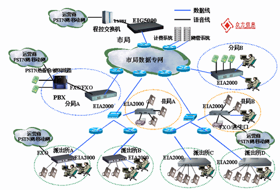 公安系統(tǒng)作為一家話務(wù)量較大的國家職能部門,平時(shí)各個(gè)分局,各個(gè)派出所之間及上下級(jí)之間的電話、傳真等交流非常多,每月支付的話費(fèi)數(shù)目相當(dāng)可觀,公安部門急需找到一種價(jià)格更便宜、服務(wù)更周到,同時(shí)使用便捷的通話解決方案,以降低辦公費(fèi)用,提高工作效率。采用了深圳眾方信息的VoIP解決方案,能使得公安部門整體話費(fèi)節(jié)省了至少50%以上,而且能實(shí)現(xiàn)多種業(yè)務(wù)的綜合處理,包括語音、數(shù)據(jù)、視頻、圖像等。