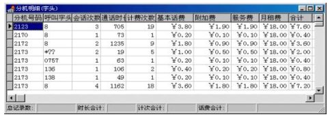 用戶可以撥打話費(fèi)查詢電話號碼,話費(fèi)查詢系統(tǒng)會提示用戶輸入查詢密碼,然后提示選擇余額查詢/時段查詢。用戶選擇時段查詢,查詢系統(tǒng)會提示用戶輸入查詢時段,然后自動將該時段內(nèi)的話費(fèi)統(tǒng)計(jì)出來,合成語音,報(bào)給用戶。時段話費(fèi)查詢必須與LANBIRD計(jì)費(fèi)/收費(fèi)系統(tǒng)配合使用,利用網(wǎng)絡(luò)共享分機(jī)話費(fèi)數(shù)據(jù)表,否則系統(tǒng)將得不到數(shù)據(jù)而無法工作。LANBIRD計(jì)費(fèi)/收費(fèi)系統(tǒng)可以與查詢繳系統(tǒng)無縫集成,不需任何人工操作。如果采用地三方的計(jì)費(fèi)軟件,則須用手轉(zhuǎn)換,或用我們的自動轉(zhuǎn)換模塊,不過由于不同的計(jì)費(fèi)系統(tǒng),話費(fèi)存儲格式不同,自動轉(zhuǎn)換模塊需要專門開發(fā)。