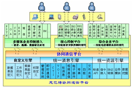 將語音應(yīng)用與實際的互聯(lián)網(wǎng)應(yīng)用結(jié)合到一起通信應(yīng)用與辦公管理系統(tǒng)的融合(協(xié)同通信)通信應(yīng)用和商業(yè)應(yīng)用的集成 語音應(yīng)用與IM、電子郵件的集成等等 |