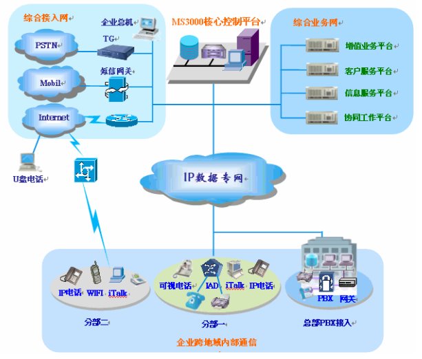 多功能的內(nèi)部通信業(yè)務(wù)(視頻、WiFi無線、軟電話漫游、即時通信、語音信箱、多方通話等)