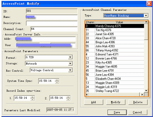 在渣打銀行錄音系統(tǒng)中,這個(gè)角色是用于綁定錄音物理端口(可以理解為某一個(gè)分機(jī))的,使這個(gè)端口的錄音資料易于辨別,如果沒(méi)有這種綁定,錄音資料里將只是顯示這個(gè)第幾號(hào)AP(AccessPoint)以及第幾號(hào)物理端口的錄音。此種綁定關(guān)系是通過(guò)錄音管理員程序建立、修改、刪除,動(dòng)態(tài)地應(yīng)用到整個(gè)系統(tǒng)中,如下圖所示: