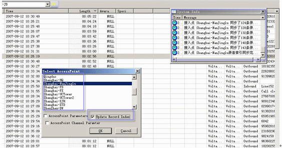 當(dāng)管理員需要聽(tīng)取錄音歷史記錄時(shí),管理員程序向中心點(diǎn)服務(wù)器發(fā)出請(qǐng)求,中心點(diǎn)服務(wù)器將管理源程序和接入點(diǎn)服務(wù)器之間建立虛擬語(yǔ)音傳輸通道,管理員程序直接通過(guò)內(nèi)存播放接收到的語(yǔ)音數(shù)據(jù),在本地硬盤(pán)上不保留任何記錄,以保證數(shù)據(jù)的安全性!