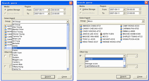 管理員對(duì)在線(xiàn)錄音的記錄可以采用多種參數(shù)查詢(xún):