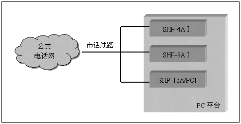 單純的語音系統(tǒng)(不需要座席,傳真等附加功能),可以采用SHP-4A、SHP-8A和SHP-16A系列的模擬線語音卡來構成,并且不需要連接卡間交換總線,這類系統(tǒng)如證券電話委托系統(tǒng),語音信箱留言系統(tǒng),銀行稅務查詢催繳系統(tǒng)等,其典型系統(tǒng)結構如下:
