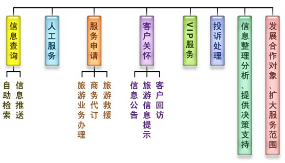 對(duì)于旅游企業(yè)提供的各種功能服務(wù)(包括旅游業(yè)務(wù)、預(yù)訂業(yè)務(wù)等),都可以通過(guò)旅游機(jī)構(gòu)的呼叫中心系統(tǒng)進(jìn)行申請(qǐng),摒棄繁瑣的申請(qǐng)過(guò)程,使用戶(hù)在第一時(shí)間得到優(yōu)質(zhì)的服務(wù)。