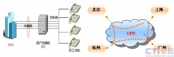 企業(yè)的傳統(tǒng)通信應(yīng)用,在語音電話方面,主要是透過傳統(tǒng)PSTN,通過中繼線連接企業(yè)交換機。數(shù)據(jù)應(yīng)用方面,分布在全國各個省市、自治區(qū)的分支機構(gòu)主要通過Internet,以E-mail方式聯(lián)絡(luò)。