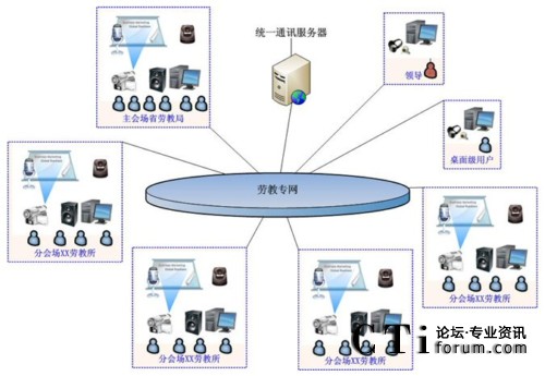 湖南省勞教局是司法廳管理的從事管理、教育、改造勞動教養(yǎng)人員的行政機構,也是省勞動教養(yǎng)管理委員會的常設辦事機構。其下屬管理有20多個下屬機構,分布于湖南省各個地市縣,以前進行全局會議時,所有的人員都需要到長沙市來進行開會,管理起來很不方便,同時差旅成本也比較高,同時局里經(jīng)常需要對下面的工作人員進行業(yè)務方面的培訓,F(xiàn)客戶需要在他們的勞教專網(wǎng)上部署一套視頻會議系統(tǒng)來進行管理和培訓。