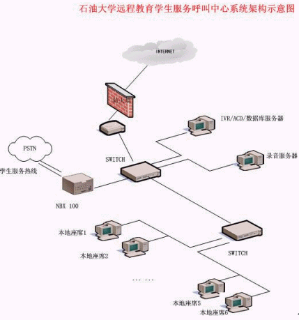 石油大學(xué)遠(yuǎn)程教育學(xué)生服務(wù)呼叫中心系統(tǒng)架構(gòu)示意圖