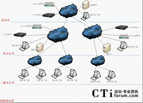 通過H.323會(huì)議網(wǎng)關(guān),把polycom終端信號(hào)接到新視頻會(huì)議系統(tǒng)中,保護(hù)原有投資,建立大規(guī)模一體化視頻會(huì)議的應(yīng)用。