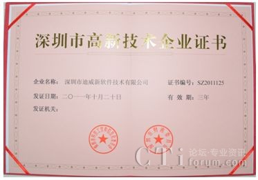 迪威通過(guò)“深圳市高新技術(shù)企業(yè)認(rèn)定”