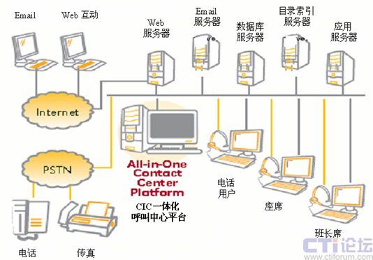 CIC可以方便的和現(xiàn)有的郵件系統(tǒng),Web服務(wù)器,數(shù)據(jù)庫(kù),索引目錄服務(wù)器 (Directories) 和主機(jī)系統(tǒng)無縫集成在一起,無需昂貴的CTI中間鍵或集成服務(wù)。