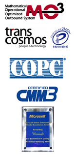 引進國際領先的MO3(獲得2006 “Contact Center World Award” 最優(yōu)秀獎)呼出技術:MO3是母公司transcosmos獨力研發(fā)的呼出服務體系。通過對數(shù)據(jù)的充分分析和挖掘,以“顧客行動模式”為基礎,預測“哪個顧客、哪個坐席、在哪個時間點、提供什么樣的服務、進行怎樣的進一步接觸”,以及精確計算是否收到最大投資和成效比(ROI),實行最有效的和顧客接觸的運營。