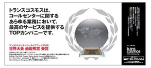 作為信息處理外包產(chǎn)業(yè)的先驅(qū),transcosmos公司于1966年正式開始了自己的業(yè)務。從此以后,我們?nèi)诤喜⑤敵鋈瞬排c技術,提供高附加值的外包服務,致力于增強客戶公司的競爭力,F(xiàn)已拓展到12000多人的規(guī)模,是日本最大和最著名的外包客戶互動服務供應商之一。目前在專業(yè)技術支持領域為列日本第一。