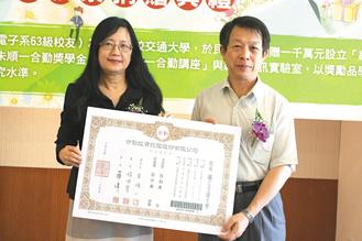 眷村子弟出身的朱順一,交大電子工程系畢業(yè),十三年前,就捐贈一千萬元給交大,成立“網(wǎng)絡(luò)通訊技術(shù)發(fā)展基金”,培育網(wǎng)通人才,另設(shè)立獎學(xué)金,濟助清、交大學(xué)生和竹苗地區(qū)高中清寒學(xué)生。