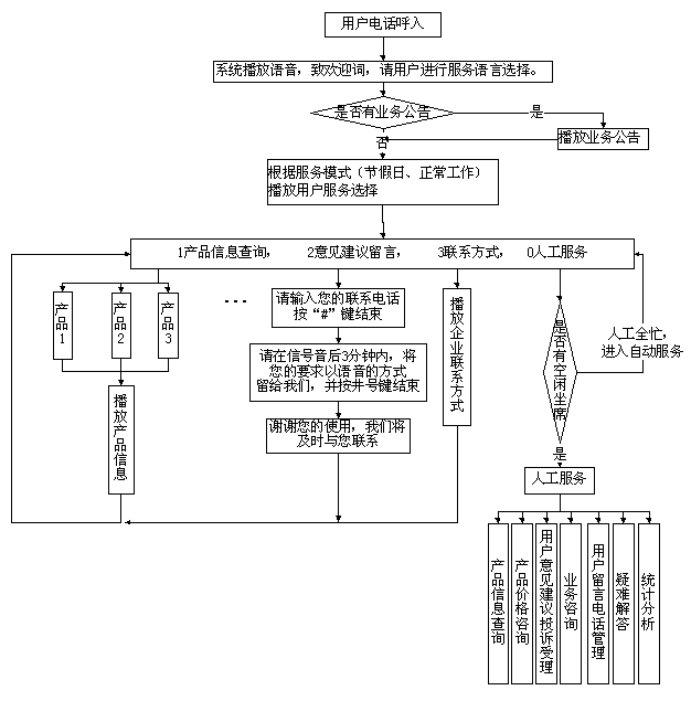 通過電腦語音引導(dǎo),提示按鍵的方式,用戶通過電話、傳真等可自動獲取企業(yè)的相關(guān)信息,如公司介紹、聯(lián)系方式、產(chǎn)品信息介紹等,以及對產(chǎn)品的投訴建議,留言,留聯(lián)系電話等;