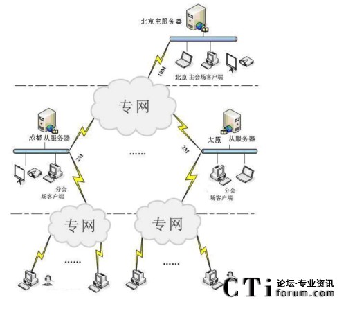 根據(jù)北京正大通力鋼管銷售有限公司對本系統(tǒng)的建設需要,CNKaran采用DX4000統(tǒng)辦公系統(tǒng)建設本期工程。傳輸網(wǎng)絡采用10M專線。整個系統(tǒng)由控制中心、北京正大通力鋼管銷售有限公司主會場和7個省市分會場組成,在控制中心配置服務器、投影儀和高清電視機,實現(xiàn)視頻多輸出源的顯示。通過網(wǎng)絡管理部門對系統(tǒng)實行設備的統(tǒng)一管理和會議資源的統(tǒng)一調(diào)度,會議中心配置切換視頻輸出單元,通過投影儀、液晶電視實時監(jiān)看7個省市分會場情況,北京正大通力鋼管銷售有限公司和7個省市分會場同時訪問控制中心的服務器,各分會場配置一套音視頻的輸入/輸出設備,7個省市分會場分別采用1M、2 M專線和2MADSL等傳輸網(wǎng)絡接入控制中心。實現(xiàn)全市的多媒體視頻會議。