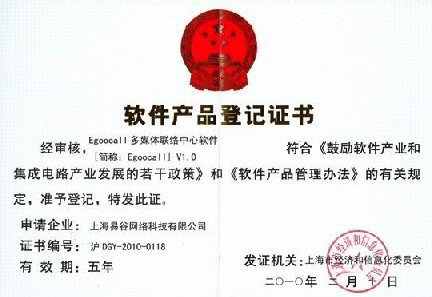 Egoocall多媒體聯(lián)絡(luò)中心軟件獲得軟件產(chǎn)品登記證書(shū)