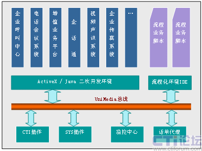 UniMedia中間件的基于業(yè)務(wù)特性實現(xiàn)了十分人性化的流程定制;跇I(yè)務(wù)是未來電話語音中間件發(fā)展的必然。