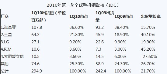 RIM替代Moto進(jìn)入前五是全球手機(jī)版圖的重要變化。事實(shí)上自2005年第二季度索尼愛立信替代明基西門子進(jìn)入前五以來,這五大廠商的名單就再也沒有變化過。RIM進(jìn)入前五的事實(shí)證明了智能手機(jī)市場(chǎng)的巨大潛力,而摩托羅拉近期也在試圖通過一系列Android機(jī)型重現(xiàn)昔日榮光。