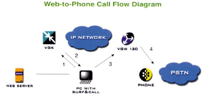 VocalTec公司的網(wǎng)上呼叫(Surf&Call)網(wǎng)絡(luò)客戶軟件5.0(Web Client5.0),可提供語(yǔ)音增值電子商務(wù)服務(wù)以及通過(guò)IP網(wǎng)的網(wǎng)絡(luò)到電話呼叫業(yè)務(wù)。Surf&Call是一種面向基于互聯(lián)網(wǎng)電信應(yīng)用的獨(dú)特網(wǎng)絡(luò)軟件,可通過(guò)互聯(lián)網(wǎng)使任何網(wǎng)站與普通電話實(shí)現(xiàn)語(yǔ)音連接,是VocalTec整體架構(gòu)的一部分。Surf&Call為網(wǎng)頁(yè)提供一個(gè)按鈕,上網(wǎng)者單擊該按鈕,就可與座席通話。在大多數(shù)瀏覽器環(huán)境下,在瀏覽需要利用Surf&Call軟件的頁(yè)面時(shí),Surf&Call可自動(dòng)下載和安裝。