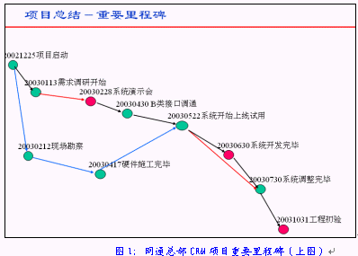 中國網(wǎng)通集團的"中國網(wǎng)通集團大客戶信息管理分析及一站服務系統(tǒng)"(以下簡稱網(wǎng)通總部CRM項目)的合同簽約儀式在這里舉行,合同總額約為人民幣3000萬元。而作為合同執(zhí)行方的是HOLLYCRM(合力金橋軟件)公司,在一個月前才從北京合力金橋系統(tǒng)集成公司拆分出來。HOLLYCRM的總裁曲道俊先生在拿到這份合同時輕輕松了一口氣,用艱苦卓絕、峰回路轉(zhuǎn)、跌宕起伏等等一系列字眼來形容這連續(xù)4個月的應標過程決不為過,畢竟所有的努力并沒有白費。但曲道俊先生并沒有完全沉浸在這種商場角逐取勝的快樂當中, 畢竟這么大的一個項目要由一個前身為事業(yè)部的公司來完全承擔實施畢竟不是一件容易的事, 他馬上整理了思路, 撥通了負責這個項目實施的項目經(jīng)理盧毅的電話:半小時后我們辦公室見。