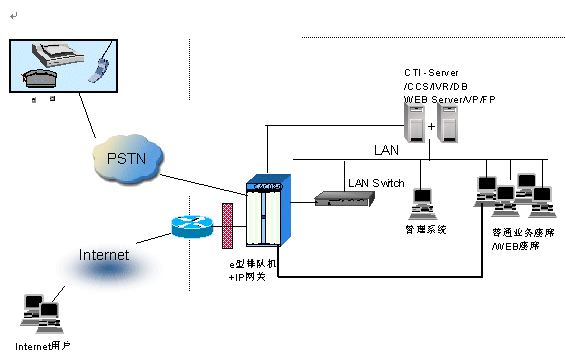。。華為的INtess®-e型多媒體呼叫中心產(chǎn)品,是集成了交換機(jī)和計算機(jī)網(wǎng)絡(luò)的系統(tǒng),根據(jù)國內(nèi)各經(jīng)營服務(wù)行業(yè)的業(yè)務(wù)特點(diǎn)和發(fā)展趨勢,以及華為公司對國內(nèi)電子商務(wù)發(fā)展的深刻理解,以充分理解和貼近用戶需求為設(shè)計、開發(fā)理念推出的高集成度的小型呼叫中心平臺。