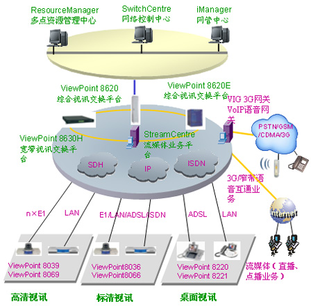 在華為公司的新一代高清晰視訊系統(tǒng)解決方案中,可為用戶提供不同系列的MCU產(chǎn)品、不同系列的終端產(chǎn)品、以及豐富的管理軟件供選擇,新一代高清晰視訊系統(tǒng)解決方案基本上涵蓋了目前市場上所有的多媒體視訊通信需求,是一個功能強(qiáng)大、組網(wǎng)靈活、基于標(biāo)準(zhǔn)協(xié)議的開放架構(gòu)的多媒體視訊系統(tǒng)?梢詾橛脩籼峁┑墓δ苋缦拢