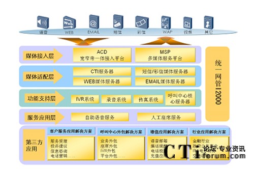 華為多媒體聯(lián)絡(luò)中心系統(tǒng)不僅支持普通語音呼叫的接入,還支持Email、Fax、短信、視頻等多種媒體呼叫接入,以及通過Web方式發(fā)起的護(hù)航瀏覽、點擊通話、文字交談等呼叫的接入,以語音、文字、圖像等多種媒體的組合為客戶提供多通道的服務(wù)。用戶可以同時通過語音、圖像、文字多種形式與聯(lián)絡(luò)中心的業(yè)務(wù)代表進(jìn)行交互,極大的拓寬了用戶與業(yè)務(wù)代表之間信息交互的空間,提高了信息交互的效率。