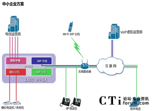 ZX60系列是智科通信(以下簡稱ZYCOO)針對中小企業(yè)需求研發(fā)的一款帶VoIP功能的多功能集團電話交換機,適合100人以下的中小企業(yè)融合通信需求。系統(tǒng)采用嵌入式DSP加全數字語音接口解決方案,系統(tǒng)穩(wěn)定性、語音質量和擴展應用是傳統(tǒng)集團電話交換機所不能比擬的。