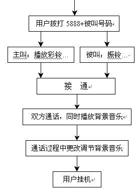 彩話業(yè)務(wù)即"個(gè)性多彩化語(yǔ)音通話"業(yè)務(wù),又叫背景音效業(yè)務(wù),是電信運(yùn)營(yíng)商新近推出的一種增值業(yè)務(wù),能在通話的過(guò)程中給通話的雙方提供背景音樂(lè)或者情景音效,并可以根據(jù)不同的被叫用戶分類提供不同的背景音效,以達(dá)到烘托通話氣氛、交流情感的作用,以下是彩話業(yè)務(wù)的基本流程圖及功能簡(jiǎn)介:
