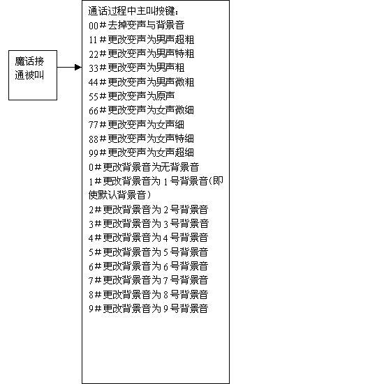 變聲通話功能也叫魔話功能,是指用戶通過通過播打特殊的號碼接入到本平臺后,再通過本平臺去呼叫最終的被叫用戶,在這樣的一個通話過程中,可以通過本平臺提供8級變聲和原聲功能:"男聲超粗、男聲特粗、男聲粗、男聲微粗、原聲、女聲微細(xì)、女聲細(xì)、女聲特細(xì)、女聲超細(xì)"。在通話過程中實時變聲,并可按鍵選擇改變變聲系數(shù)或恢復(fù)原聲,趣味非凡,超常體驗。