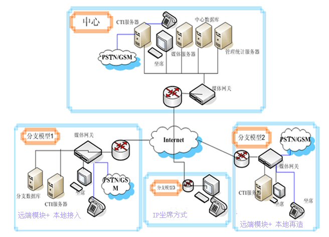 - 多種分布式、遠端坐席實現(xiàn)模式,滿足用戶不同分支機構的業(yè)務和規(guī)模需要。
