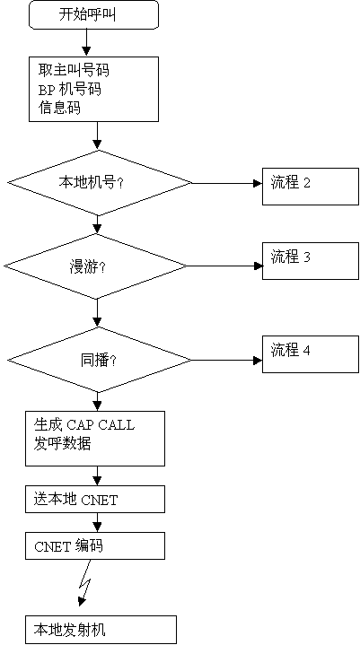 1. 發(fā)本地呼是由自動臺通過PCM數(shù)字中繼, MFC信號中取得BP機(jī)號及主叫電話號碼, 或從用戶DTMF撥號中得到信息碼,然后形成發(fā)呼串,送到發(fā)呼工作站,由發(fā)呼工作站形成CAP CALL發(fā)呼串發(fā)到本地CNET,由CNET送到編碼器編碼后送到發(fā)射機(jī)發(fā)射,完成呼叫過程。