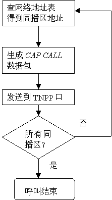 本地呼叫登記了同播功能的本地機(jī)時, 自動臺通過PCM數(shù)字中繼, MFC信號中取到BP機(jī)號及主叫電話號碼, 或從用戶DTMF撥號中得到信息碼,形成發(fā)呼串送到發(fā)呼工作站,由發(fā)呼工作站根據(jù)同播區(qū)號,往所有的自動臺發(fā)CAP CALL,后面的呼叫過程就由同播地自動臺來完成。同播區(qū)可以為包括本地區(qū)的多個區(qū)。下圖中TNPP口可以為本地TNPP端口或聯(lián)網(wǎng)TNPP端口。