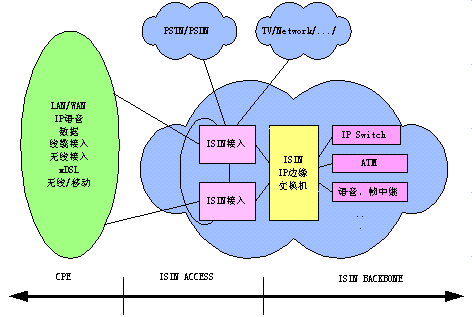 BACKBONE(骨干網(wǎng))、ISIN ACCESS(接入網(wǎng))和ISIN CPE(用戶端系統(tǒng)設(shè)備),可以構(gòu)成向用戶提供語(yǔ)音、數(shù)據(jù)、圖像等綜合業(yè)務(wù)的統(tǒng)一的ISIN網(wǎng)絡(luò)體系。
