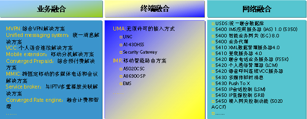 在全球部署了最大規(guī)模的移動(dòng)IMS和應(yīng)用,提供視頻的共享、多媒體會(huì)議等融合業(yè)務(wù)