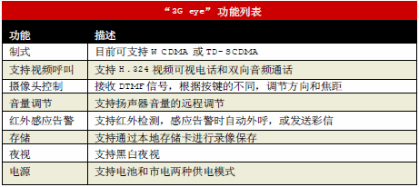 “3Geye”業(yè)務(wù)是由上海貝爾股份有限公司開(kāi)發(fā)的一個(gè)針對(duì)家庭及小型商品市場(chǎng)的視頻監(jiān)控類(lèi)業(yè)務(wù),它利用3G中獨(dú)有的64K視頻電路域,建立起用戶(hù)與前端攝像頭的視頻電話(huà),從而達(dá)到視頻監(jiān)控的目的。