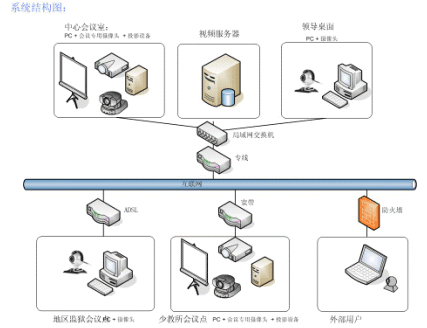 所以四川省勞動(dòng)教育局希望能夠建立一個(gè)基于自身網(wǎng)絡(luò),高效率的溝通平臺(tái),滿足日常工作和系統(tǒng)培訓(xùn)等對(duì)會(huì)議的需求,可以提高勞教系統(tǒng)的工作效率,及時(shí)傳達(dá)上級(jí)精神,并實(shí)現(xiàn)對(duì)下屬各級(jí)別單位的有效管理等。