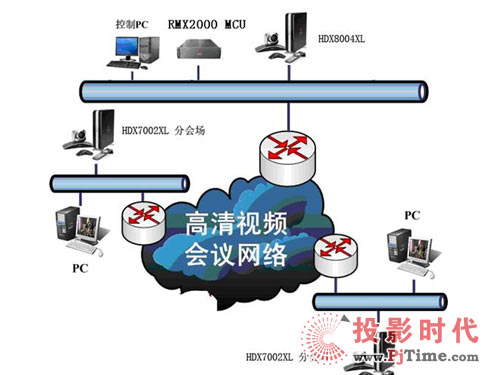 - 采用2Mbps專線方式組網(wǎng),實現(xiàn)全高清視頻會議