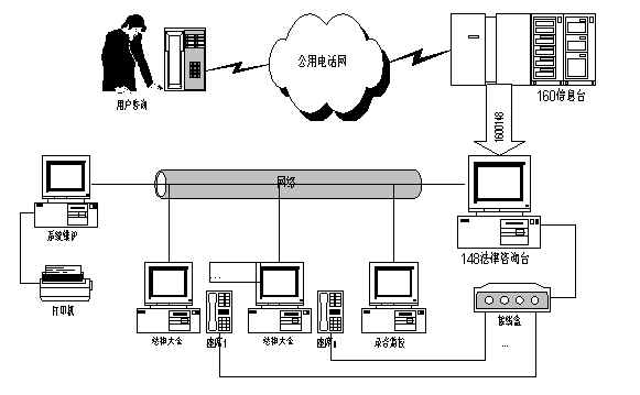本系統(tǒng)基于WINDOWS95/98/NT操作系統(tǒng),操作簡易、配置靈活、安全可靠,是建立148法律咨詢電話服務(wù)系統(tǒng)的最佳選擇。