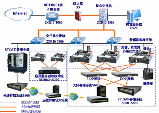 - ZTE磁盤陣列、磁帶庫、FC連接設備等存儲硬件設備;