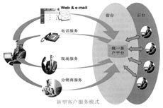 在以客戶(hù)服務(wù)中心為前臺(tái)的新型服務(wù)模式中,統(tǒng)一了客戶(hù)服務(wù)的平臺(tái)。客戶(hù)只需要和客戶(hù)服務(wù)中心打交道,所有的問(wèn)題都可以通過(guò)客戶(hù)服務(wù)中心解決。用戶(hù)只需要打一次電話即可解決所有問(wèn)題!同時(shí),客戶(hù)服務(wù)中心作為一個(gè)信息島,統(tǒng)一與企業(yè)內(nèi)部各個(gè)部門(mén)、資源進(jìn)行溝通,以方便解決用戶(hù)的所有問(wèn)題。