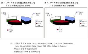 2002年年初,在IDC預(yù)測的本年度IT業(yè)界熱點(diǎn)技術(shù)中,視頻會(huì)議技術(shù)位居前列。而根據(jù)通信專業(yè)領(lǐng)域著名獨(dú)立研究機(jī)構(gòu)Wainhouse 的一份調(diào)查報(bào)告,2001年全球視頻通信領(lǐng)域僅設(shè)備市場,容量就達(dá)到近6億美元,占整個(gè)視頻會(huì)議市場52%的份額。Wainhouse還指出,2002年是視頻會(huì)議領(lǐng)域發(fā)展極為迅猛的一年,估計(jì)到2006年,整個(gè)視頻會(huì)議市場的市場容量將達(dá)到29億美元,比2001年增長20.4%。