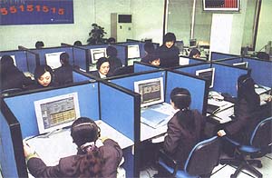 圖為經(jīng)過專業(yè)培訓(xùn)的客戶服務(wù)代表正在親切客戶來電